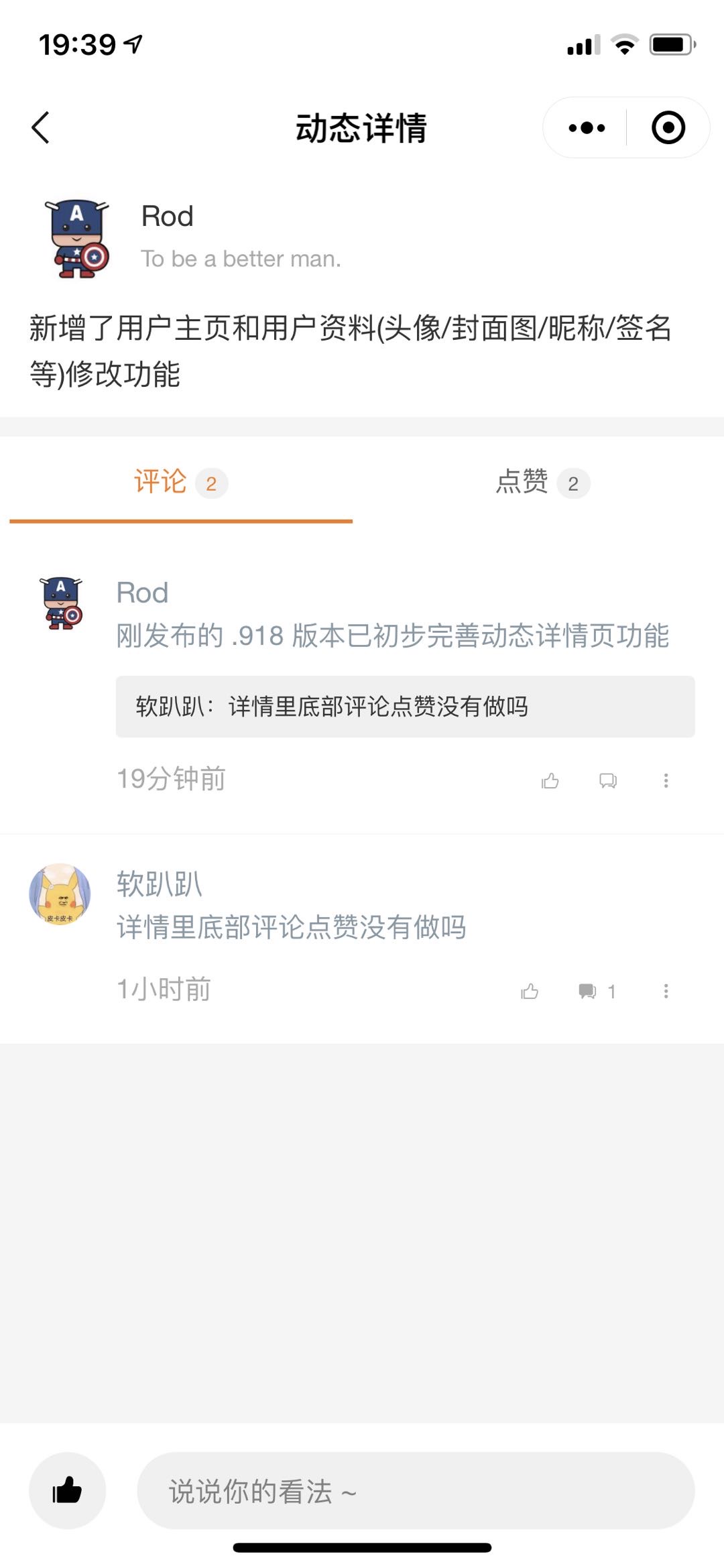 刚发布的 .918 版本已初步完善动态详情页功能