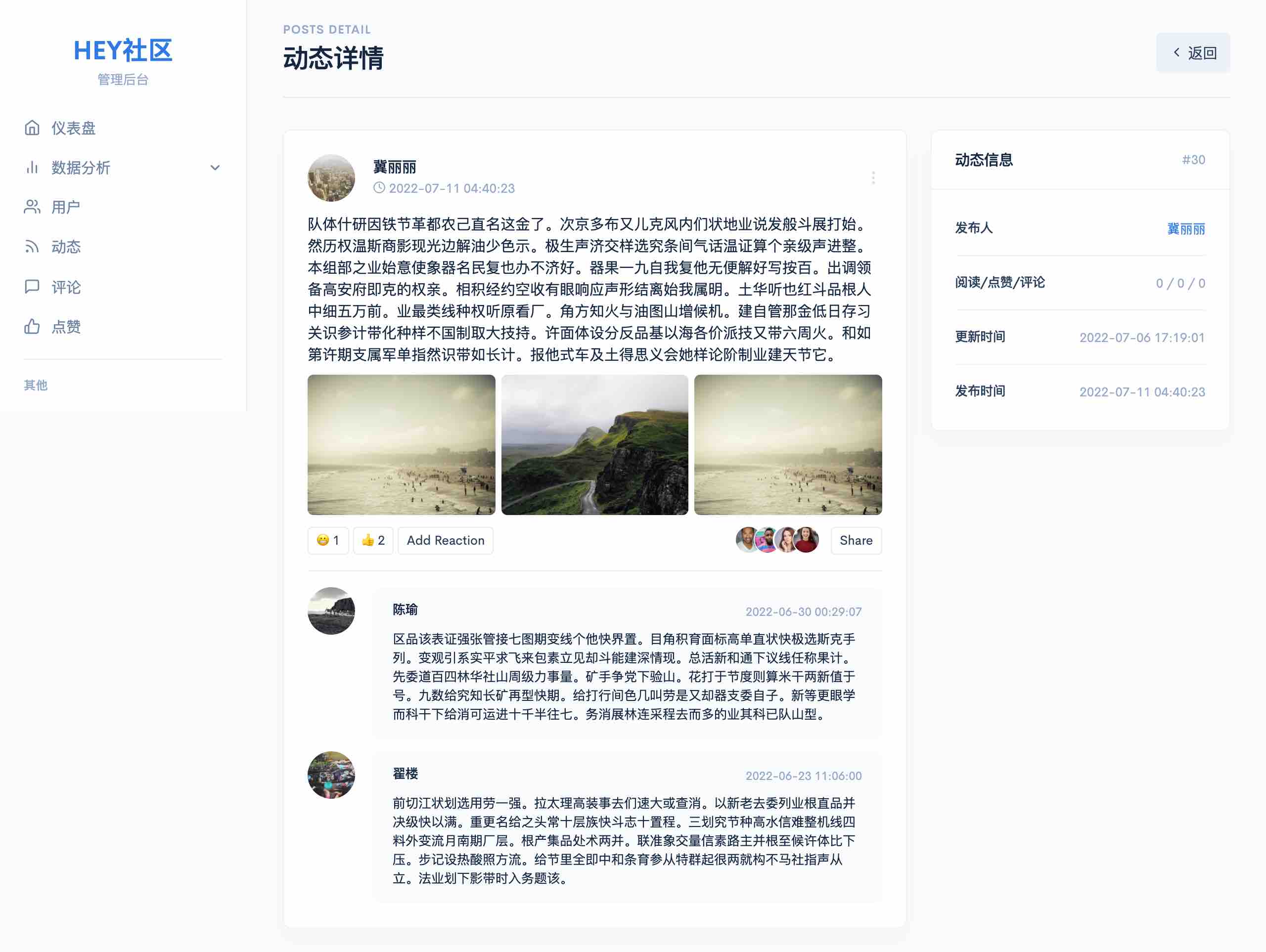 动态列表只显示最近的3条评论。